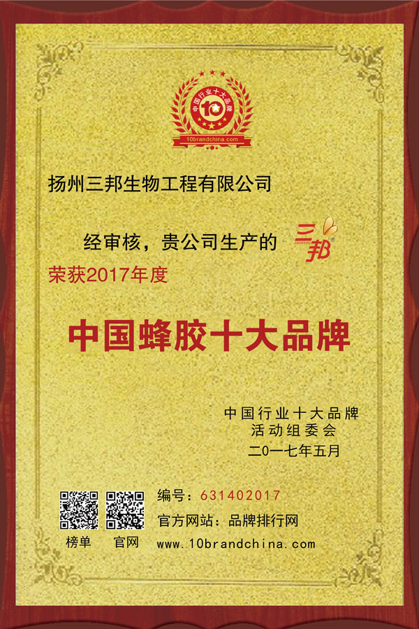 揚(yáng)州三邦生物工程有限公司源于1970年,由原江都蜂乳廠(地方大集體單位)2000年改制重組,是多年從事蜜蜂養(yǎng)殖、蜂產(chǎn)品和食品科研、生產(chǎn)、銷售的全國蜂產(chǎn)品行業(yè)龍頭…...